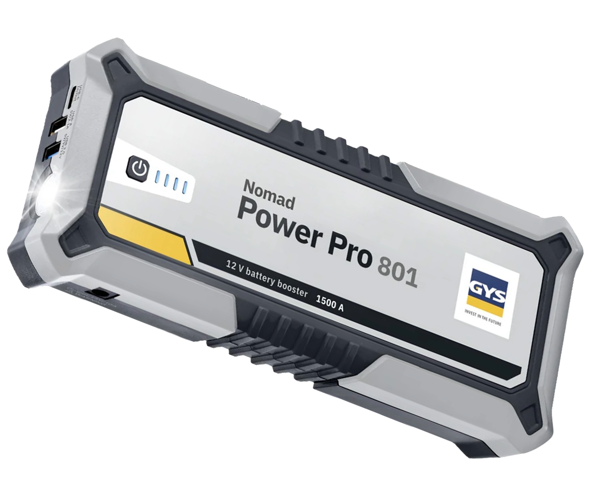 The NOMAD POWER PRO 801 from GYS is a high-performance lithium booster (74 Wh) combining 3 functions: